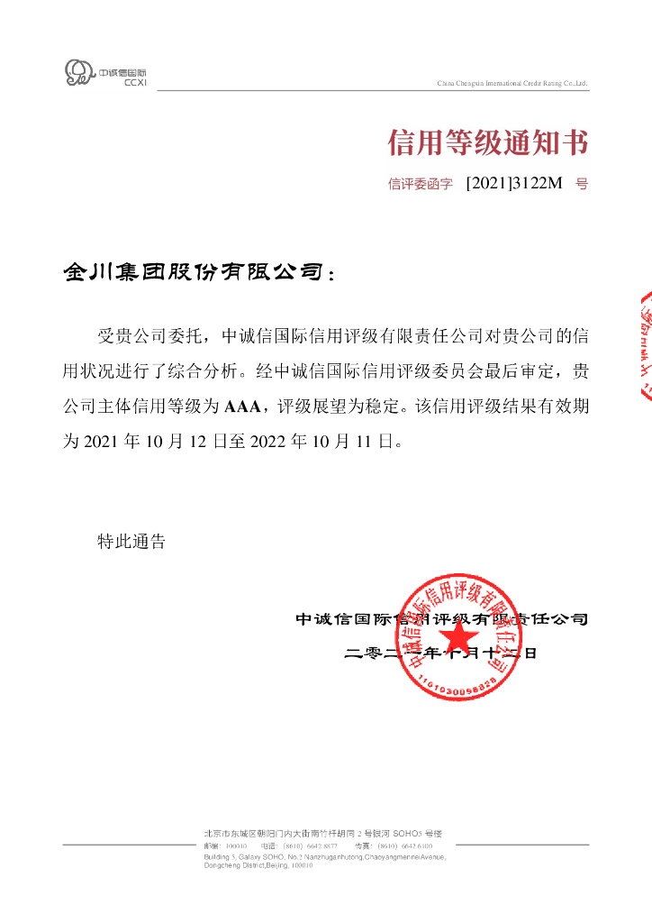 中诚信:2021年度金川集团股份有限公司信用评级报告.pdf