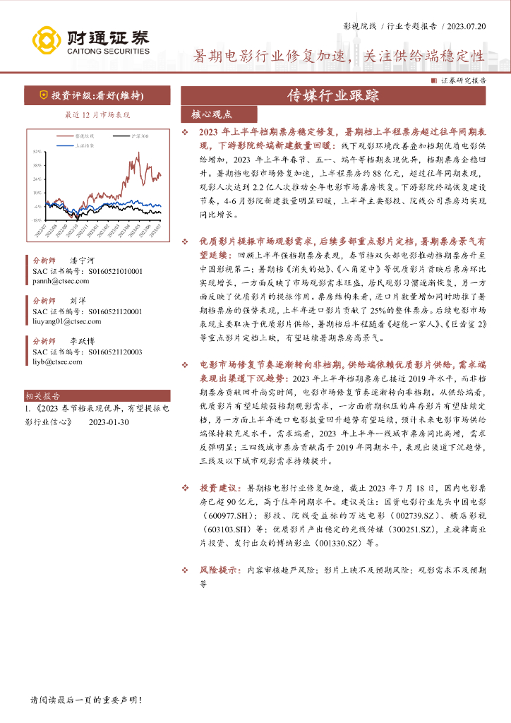 财通证券:传媒行业跟踪:暑期电影行业修复加速,关注供给端稳定性.pdf