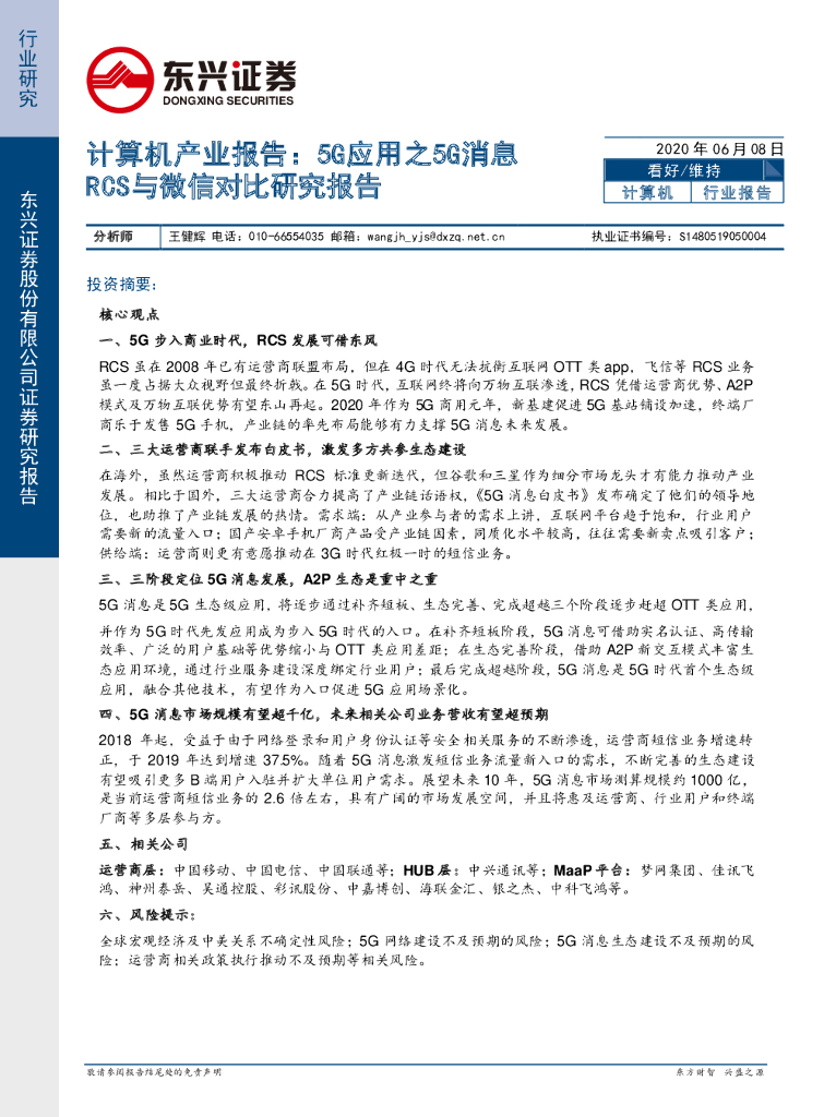 东兴证券:计算机产业报告:5G应用之5G消息RCS与微信对比研究报告.pdf