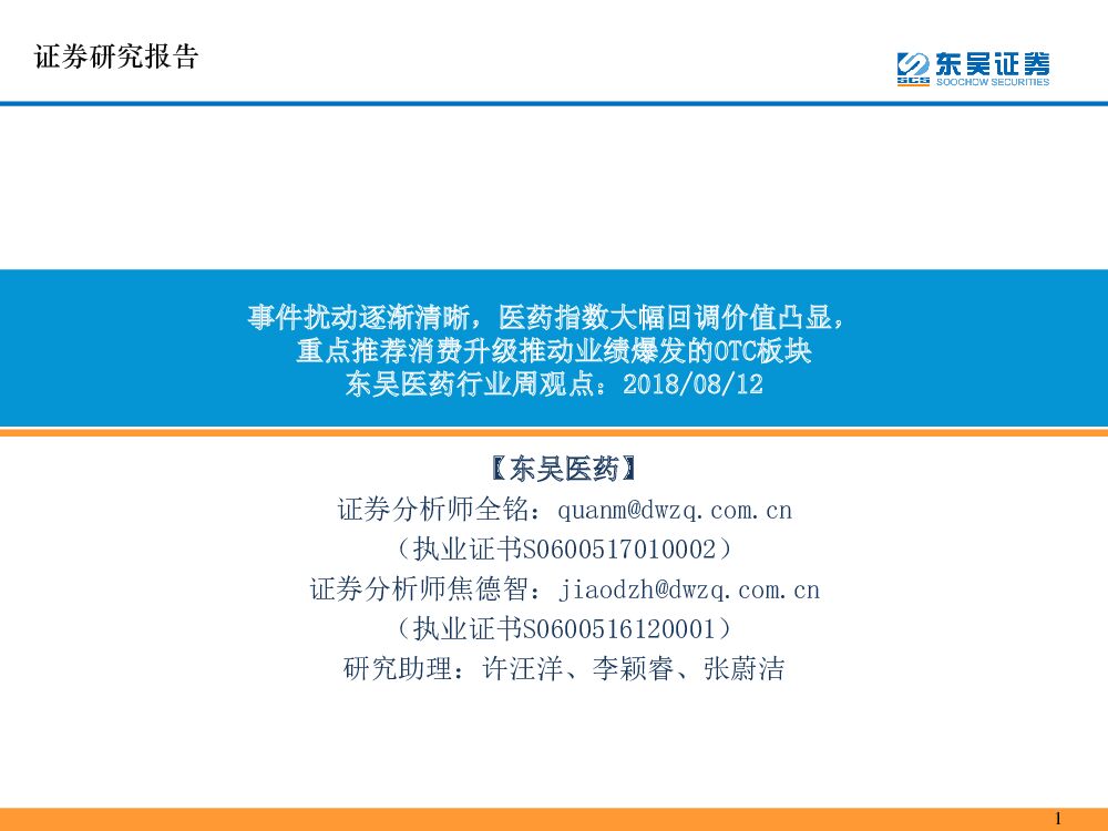 东吴证券:医药行业周观点:事件扰动逐渐清晰,医药指数大幅回调价值凸显,重点推荐消费升级推动业绩爆发的OTC板块.pdf