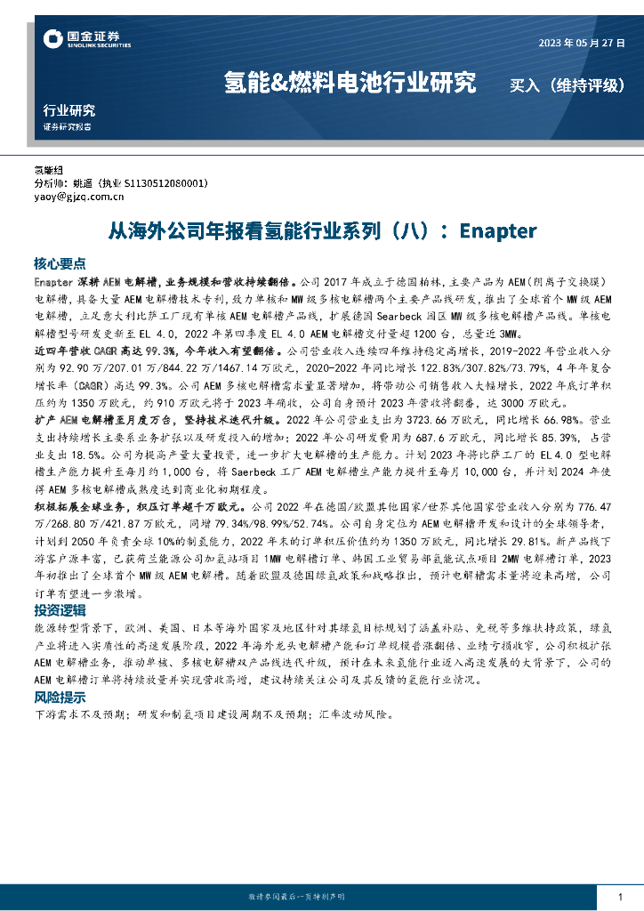 国金证券:氢能&燃料电池行业研究:从海外公司年报看氢能行业系列(八):Enapter.pdf
