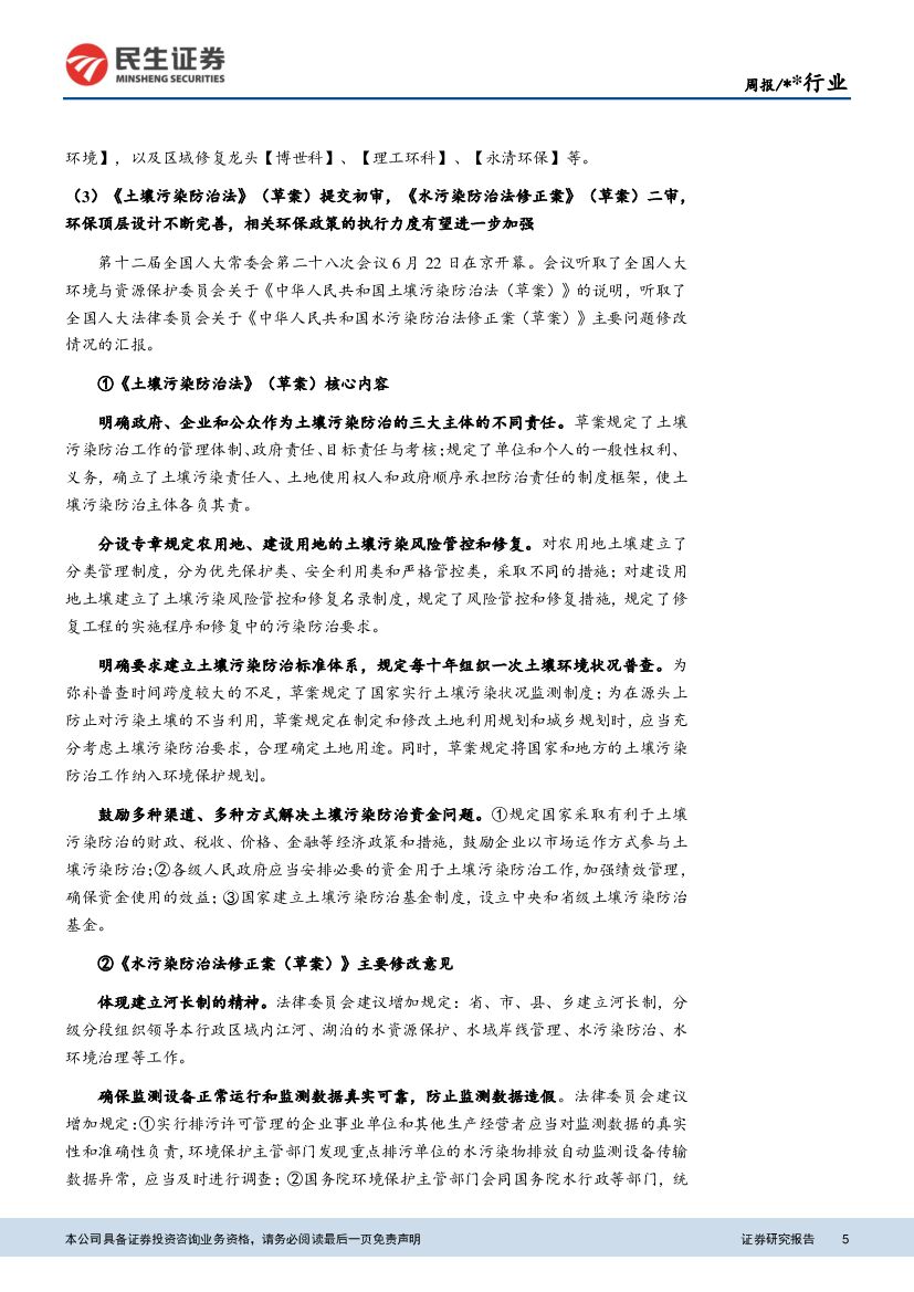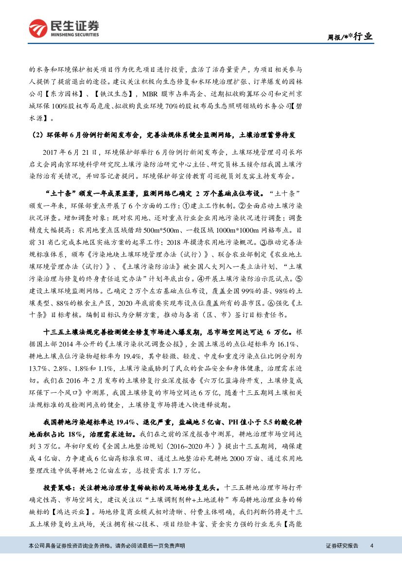 民生证券:环保行业周报:《土壤污染防治法》(草案)提交初审-土壤利好频出,关注耕地治理及场地修复.pdf