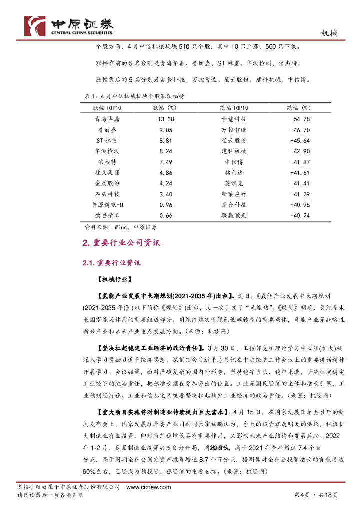 中原证券:机械行业月报:成长板块估值承压,二季度关注稳增长受益板块.pdf