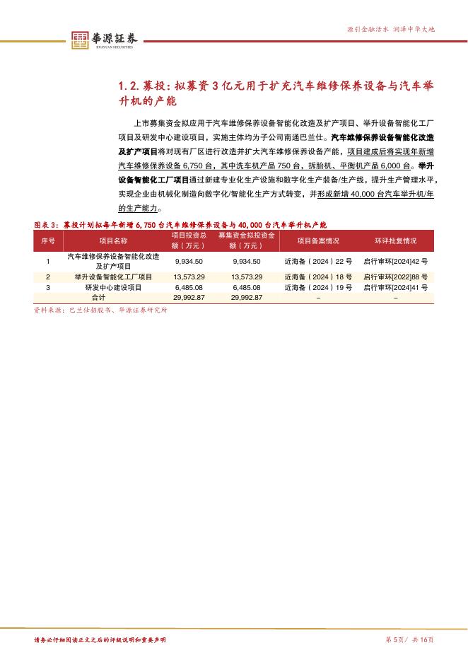 华源证券:巴兰仕(920112)-深耕汽车维修保养设备20年,募资拟扩充维修保养设备与举升机产能-250817.pdf