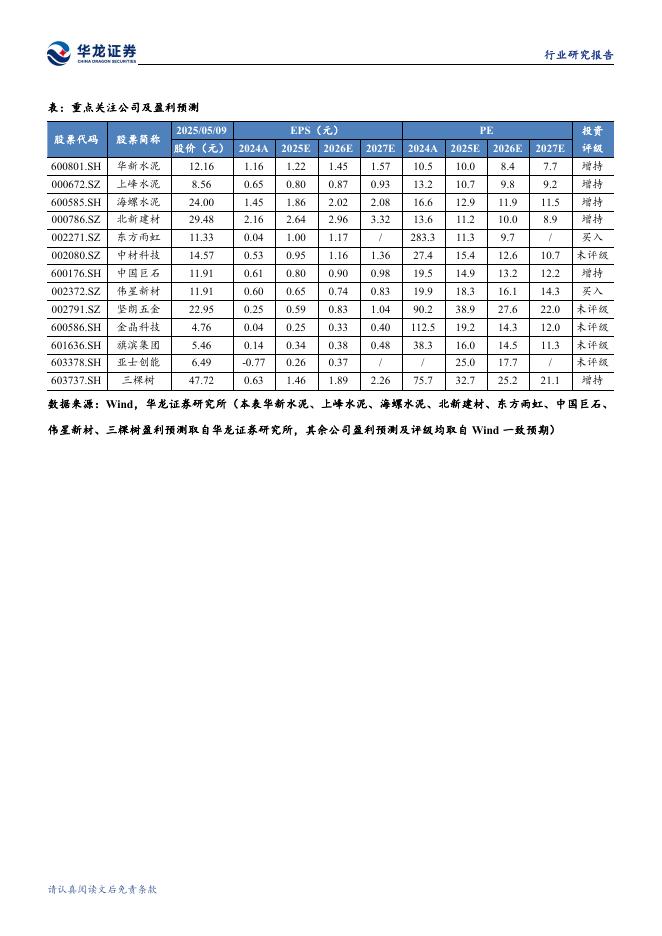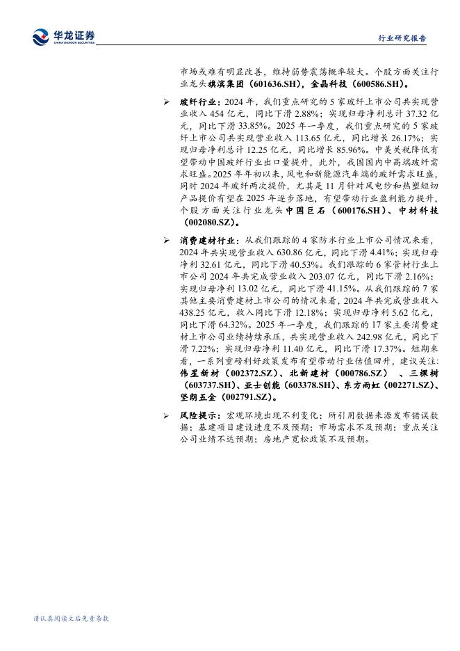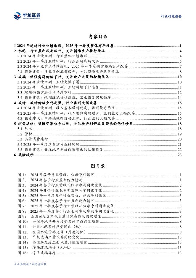 华龙证券:建筑材料行业2024年年报及2025年一季报综述:建材行业业绩筑底,关注利好政策带来的估值回升.pdf