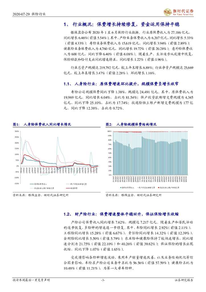 新时代证券:保险行业2020年1至6月概况:保费增长持续修复,资金运用保持平稳.pdf