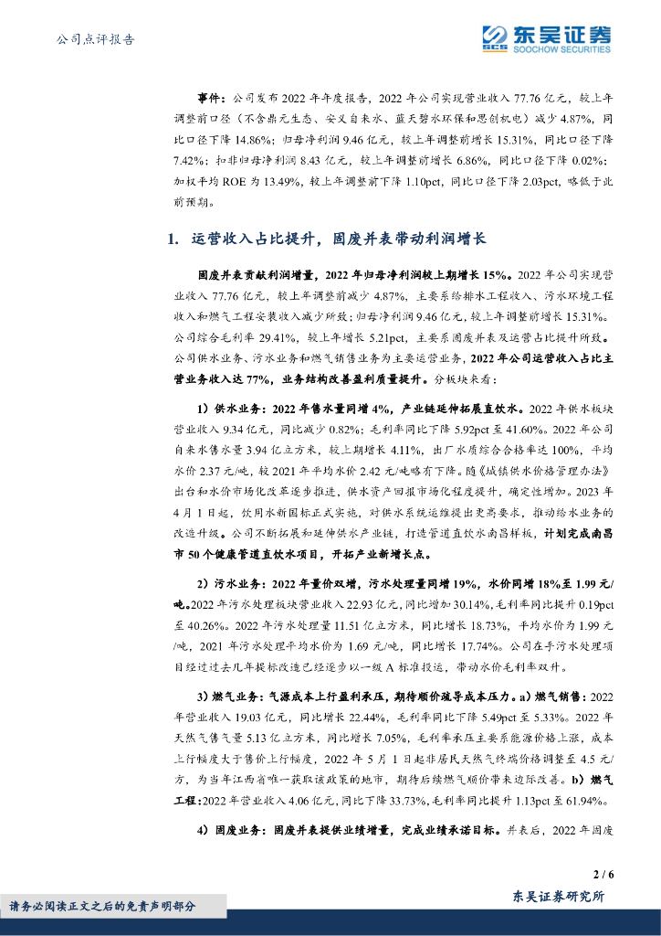 东吴证券:洪城环境(600461)-2022年报点评:固废并表带动业绩增长,厂网一体化&直饮水拓展可期.pdf