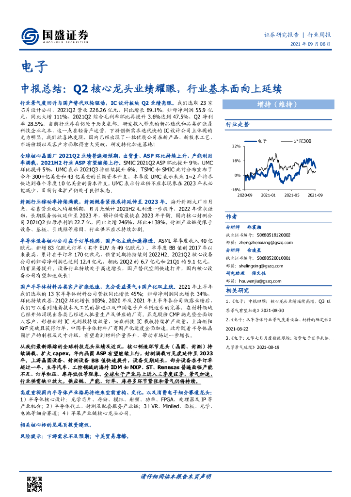 国盛证券:电子:中报总结:Q2核心龙头业绩耀眼,行业基本面向上延续.pdf