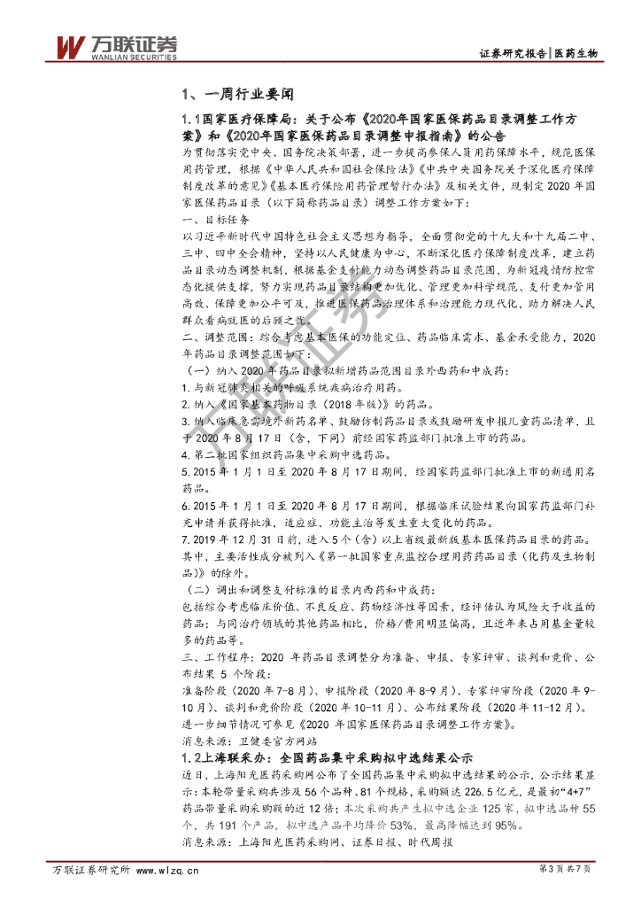 万联证券:医药生物行业周观点:集中采购拟中选公示,医保调整提升创新价值.pdf