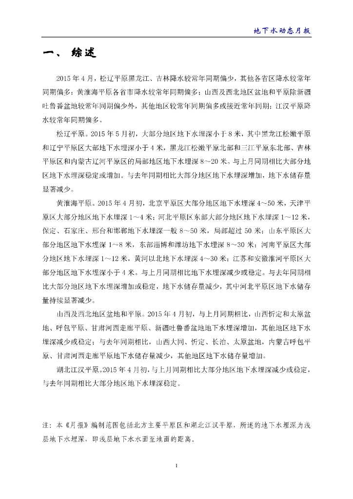 水利部:《地下水动态月报》2015年5月.pdf