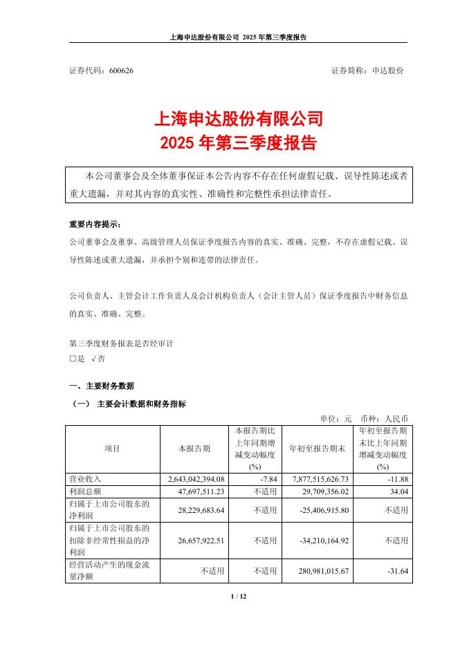 600626-申达股份:申达股份2025年第三季度报告.pdf