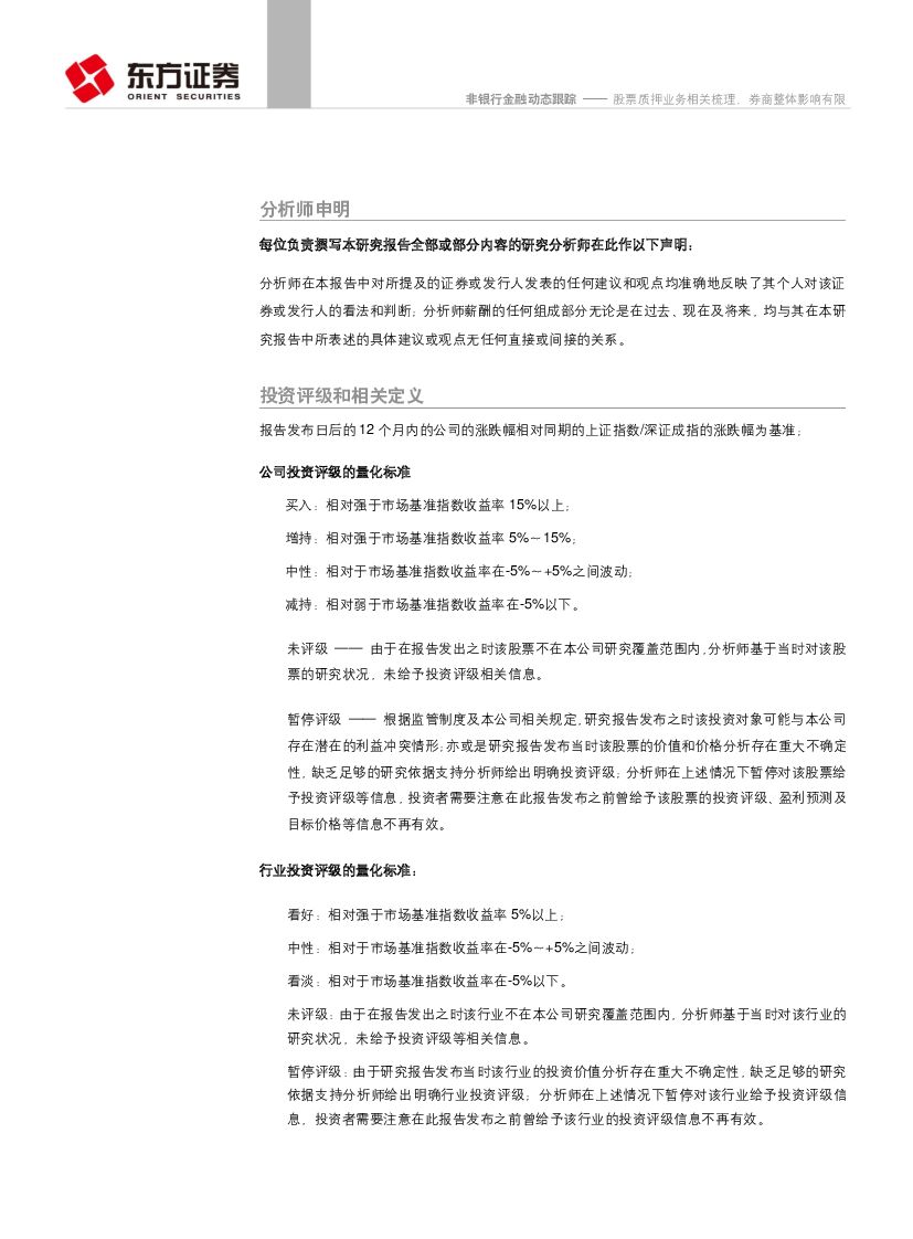 东方证券:非银行金融行业动态跟踪:股票质押业务相关梳理,券商整体影响有限.pdf