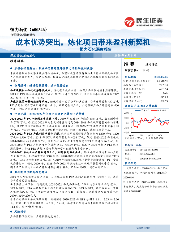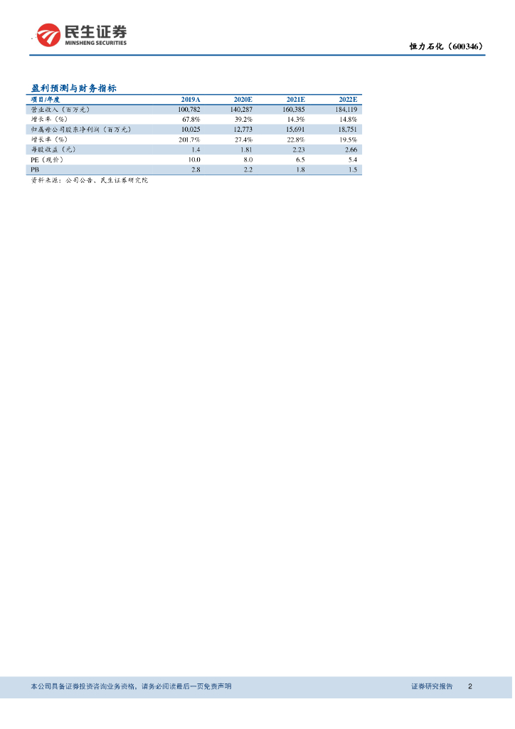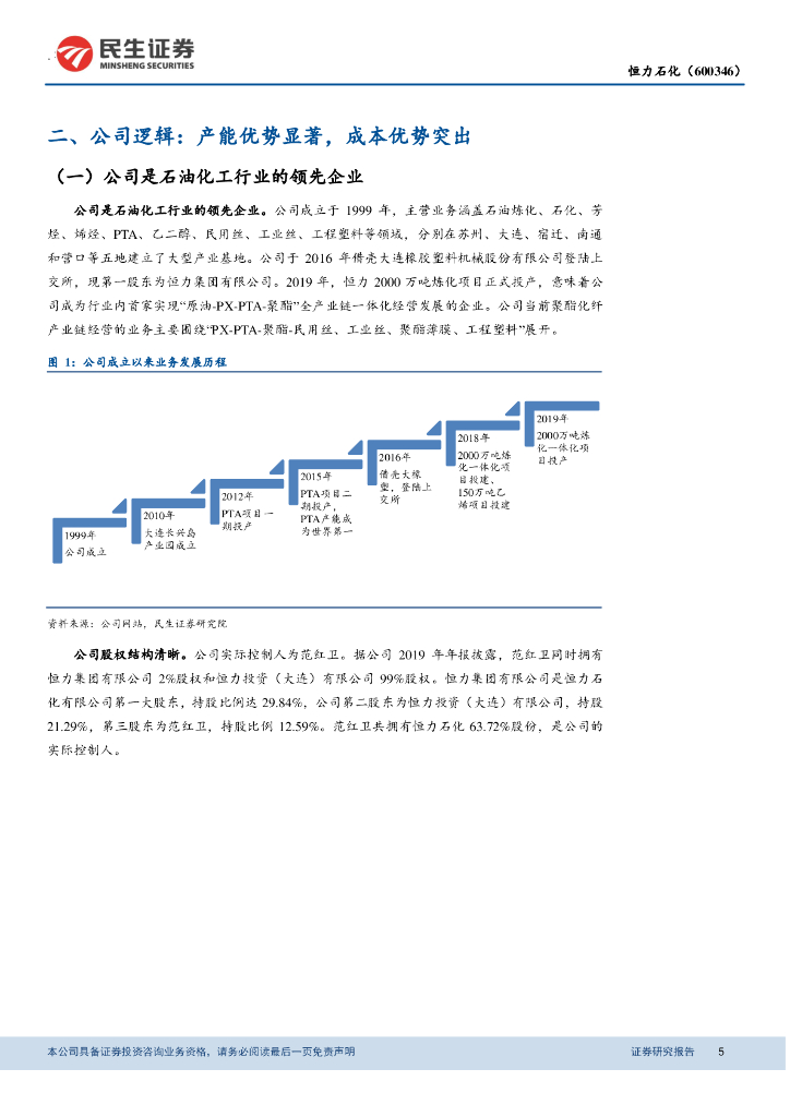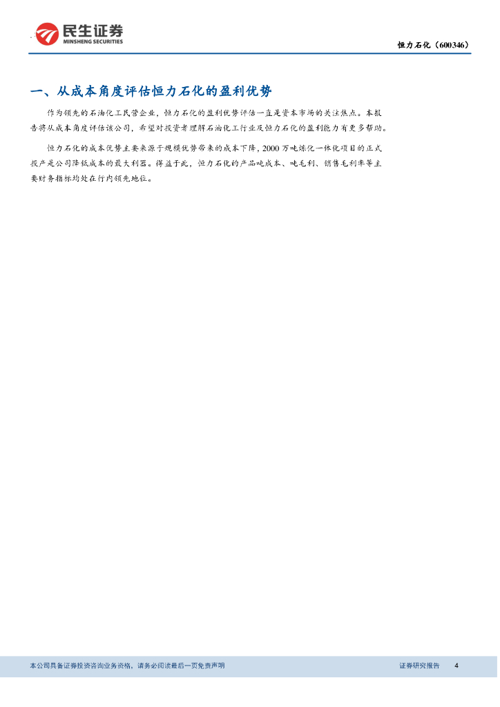 民生证券:恒力石化深度报告:成本优势突出,炼化项目带来盈利新契机.pdf