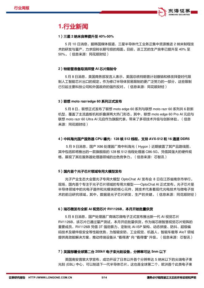 东海证券:电子行业周报:晶圆代工厂产能利用率高企,下游市场需求结构性复苏.pdf
