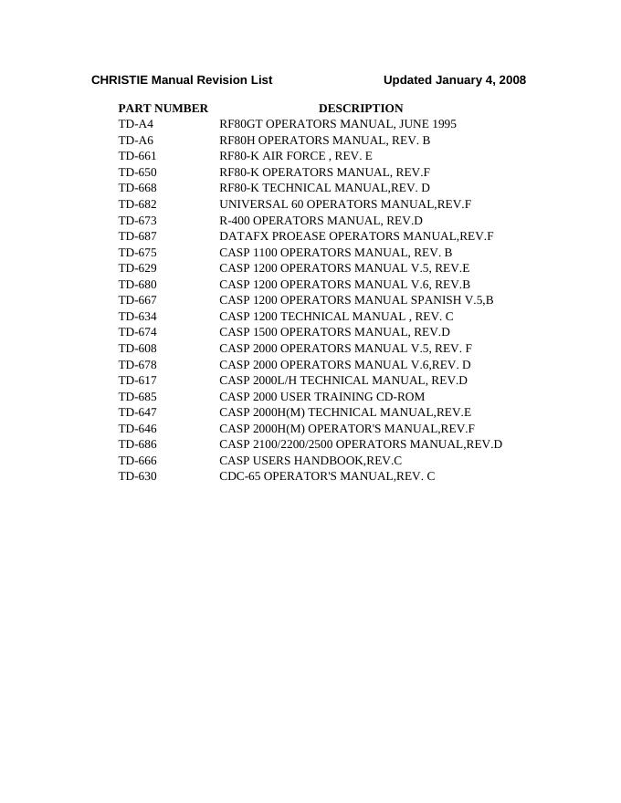 CHRISTIE 操作手册和维修手册.pdf