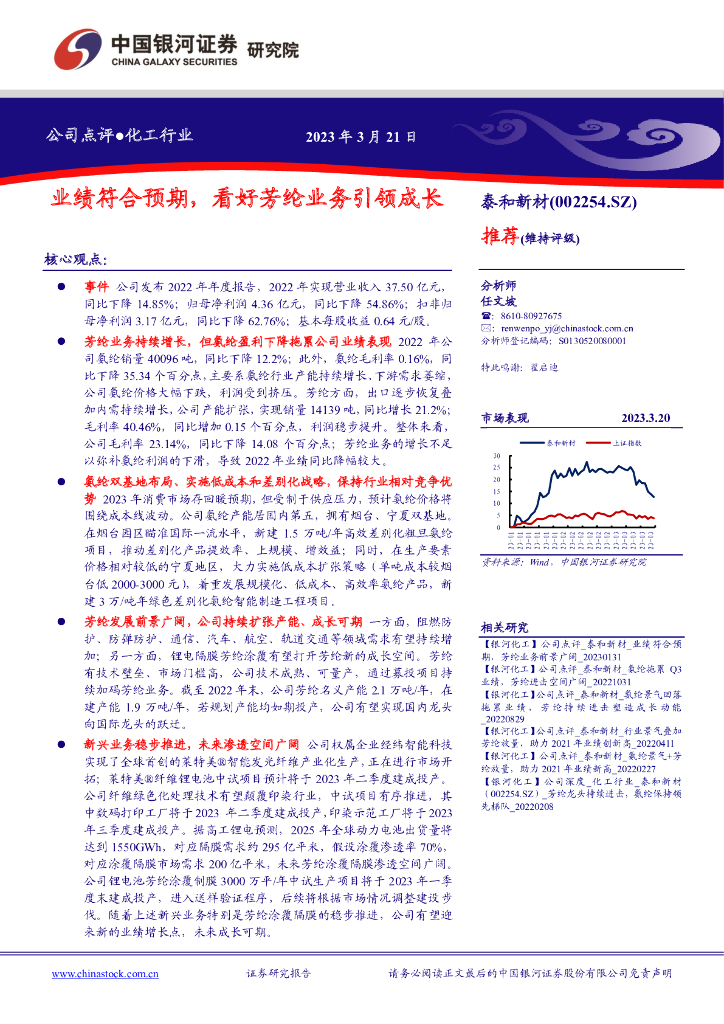 中国银河:泰和新材(002254)-业绩符合预期,看好芳纶业务引领成长.pdf