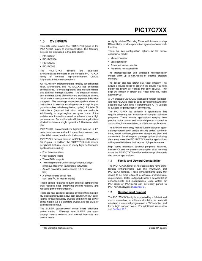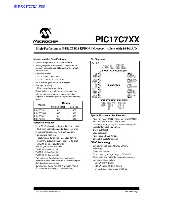 MICROCHIP PIC17C7XX High-Performance 8-Bit CMOS EPROM Microcontrollers with 10-bit A/D 数据手册.pdf