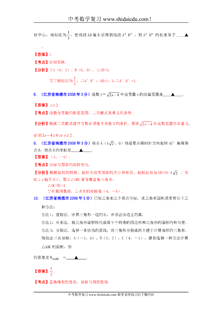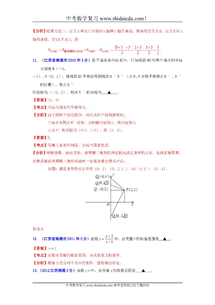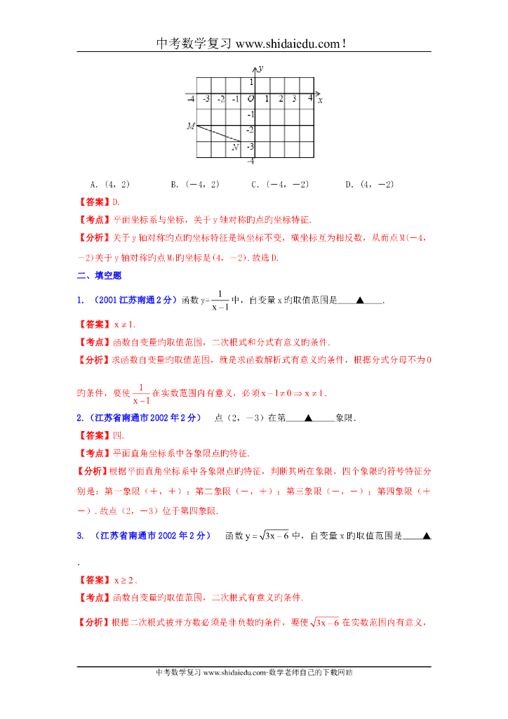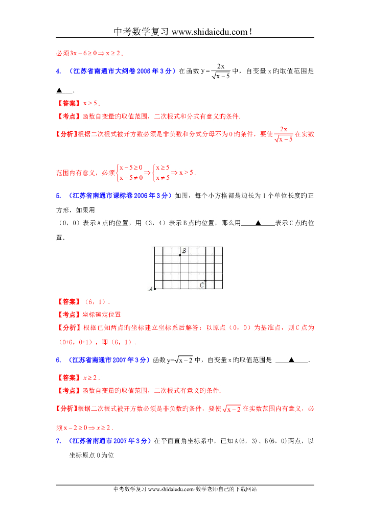 江苏南通-中考数学试题分类解析专题5:数量和位置变化.doc