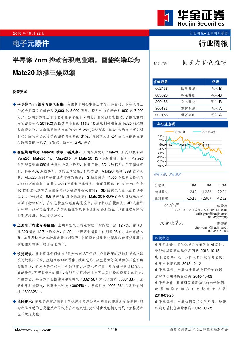 华金证券:电子元器件行业周报:半导体7NM推动台积电业绩,智能终端华为Mate20 助推三摄风潮.pdf