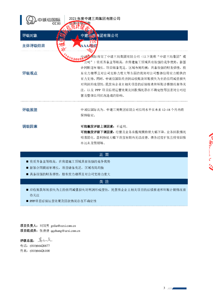 中诚信:中建三局集团有限公司主体信用评级报告及跟踪评级安排.pdf