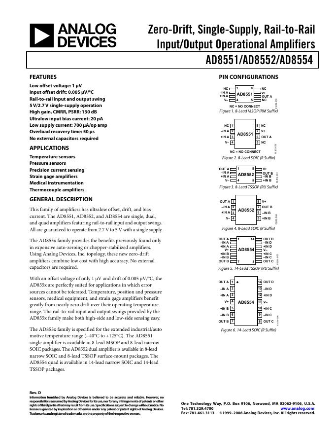 ANALOG DEVICES AD8551/AD8552/AD8554 数据手册.pdf