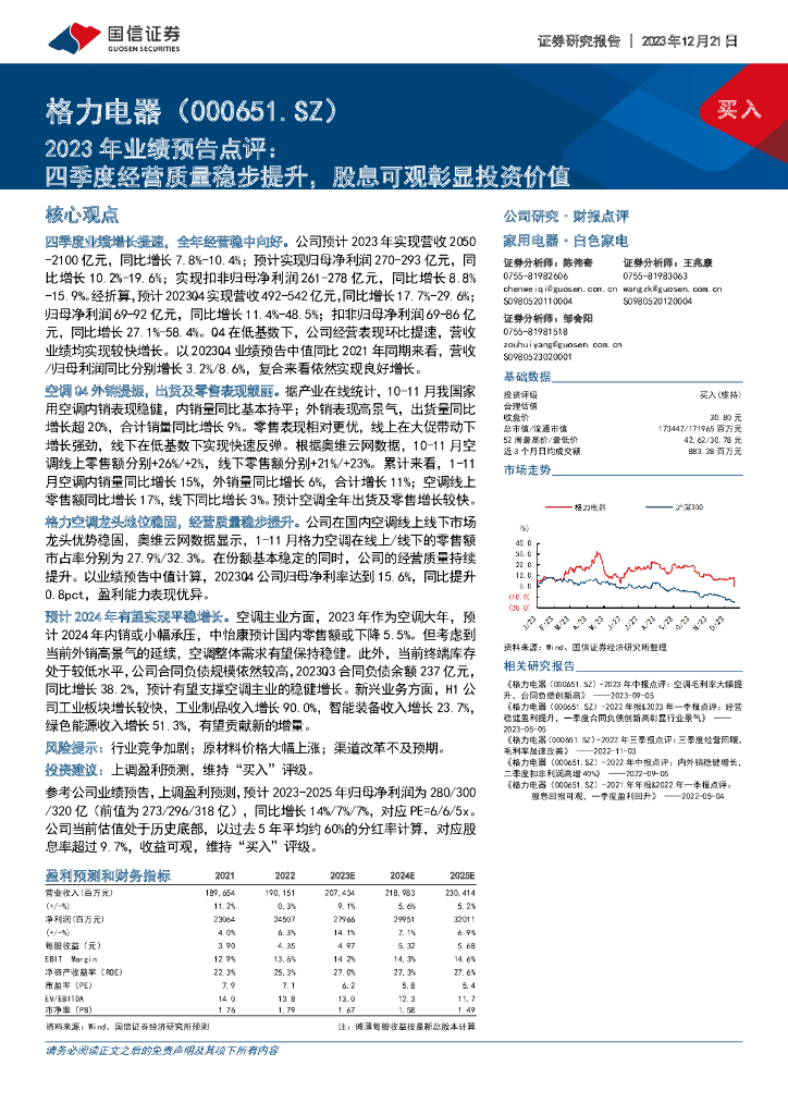 国信证券:格力电器(000651)-2023年业绩预告点评:四季度经营质量稳步提升,股息可观彰显投资价值.pdf