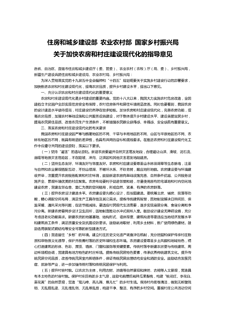 住房和城乡建设部 农业农村部 国家乡村振兴局 关于加快农房和村庄建设现代化的指导意见.pdf