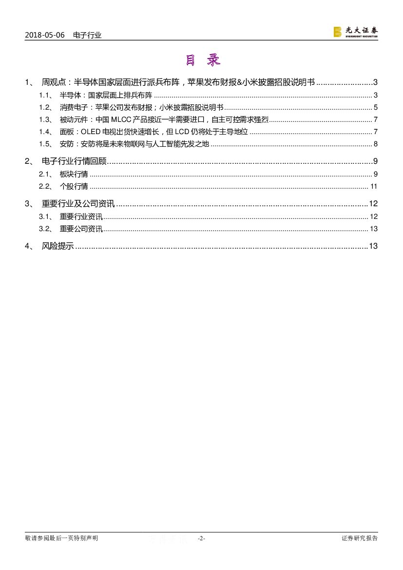 光大证券:电子行业周报:半导体国家层面进行派兵布阵,苹果发布财报&小米披露招股说明书.pdf