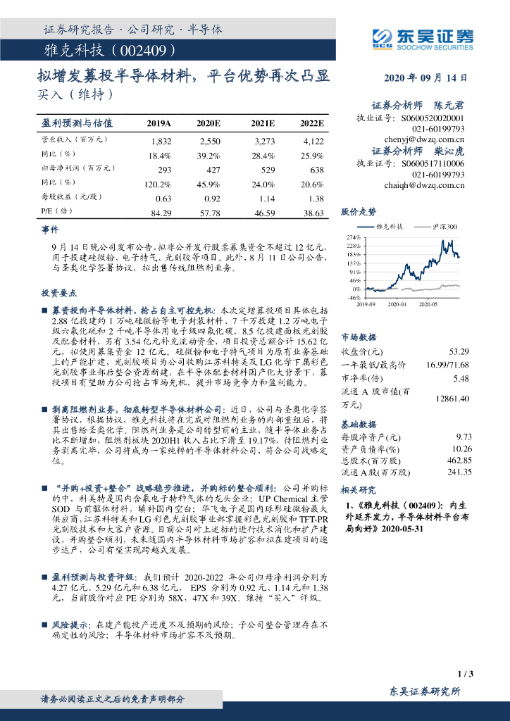 东吴证券:雅克科技(002409)-拟增发募投半导体材料,平台优势再次凸显.pdf