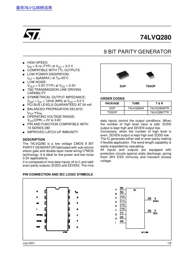 ST 74LVQ280 9 BIT PARITY GENERATOR 数据手册.pdf