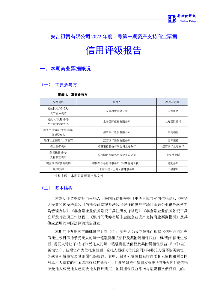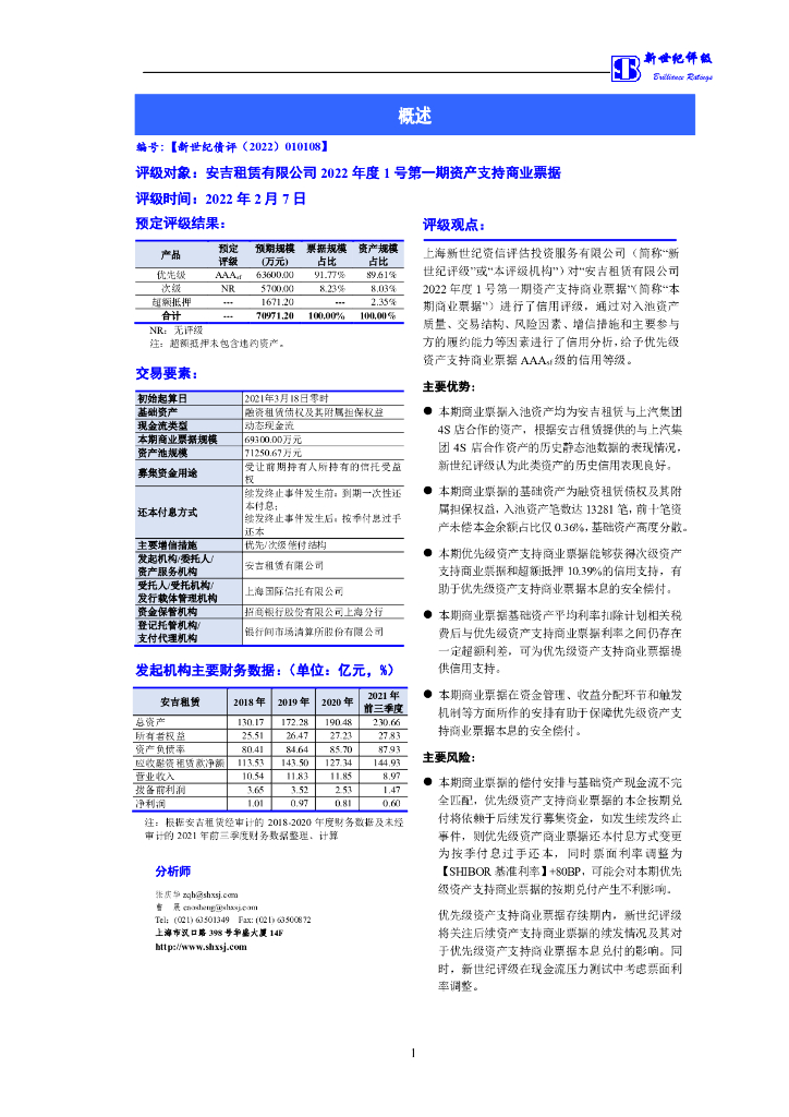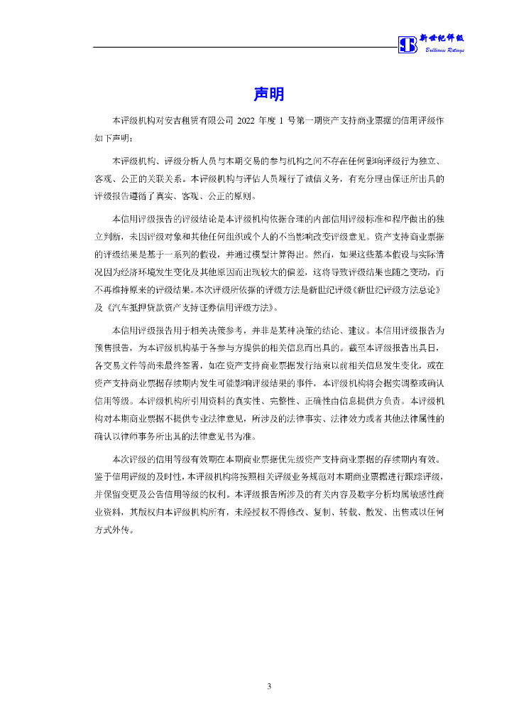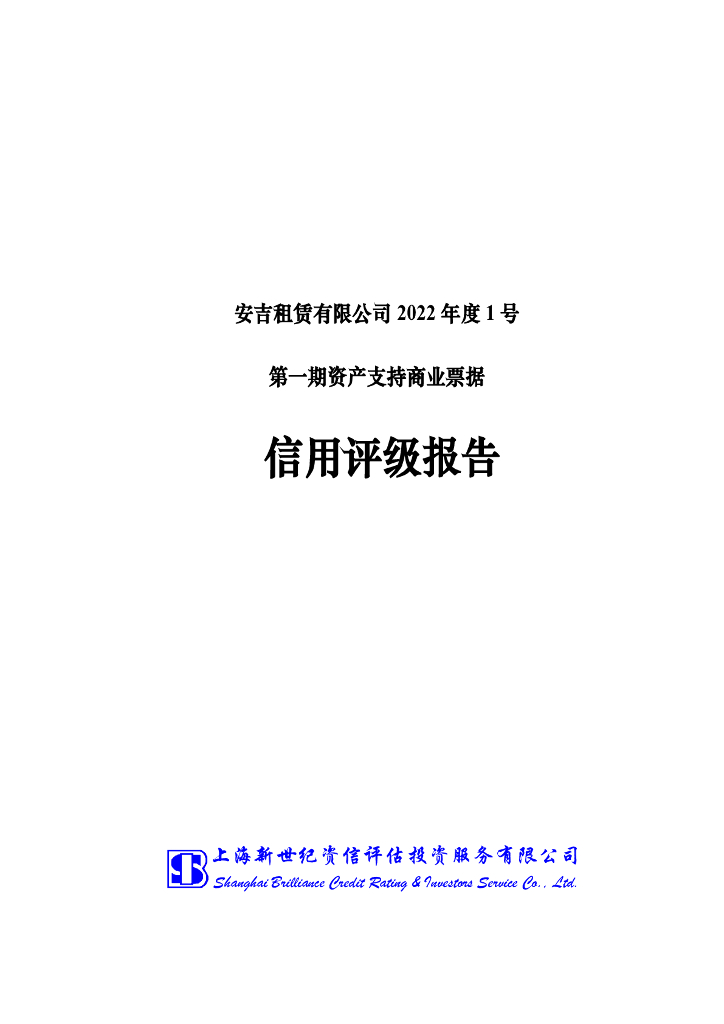 新世纪:安吉租赁有限公司2022年度1号第一期资产支持商业票据信用评级报告.pdf
