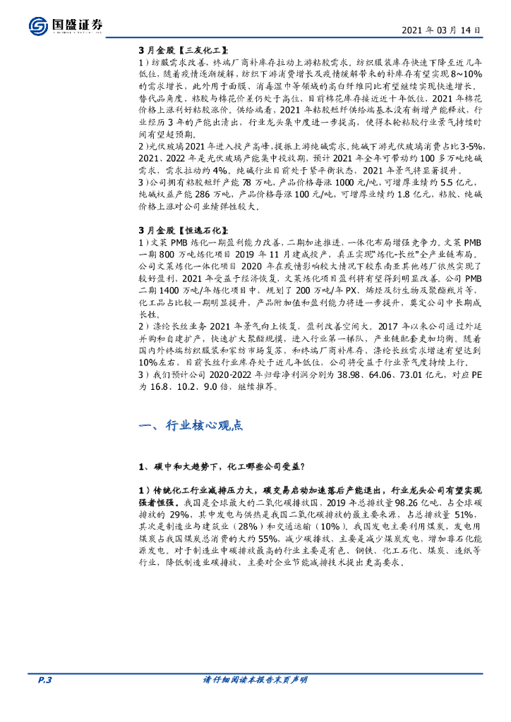 国盛证券:化工行业周报:继续推荐核心资产及低估值高景气标的,关注碳中和受益标的.pdf