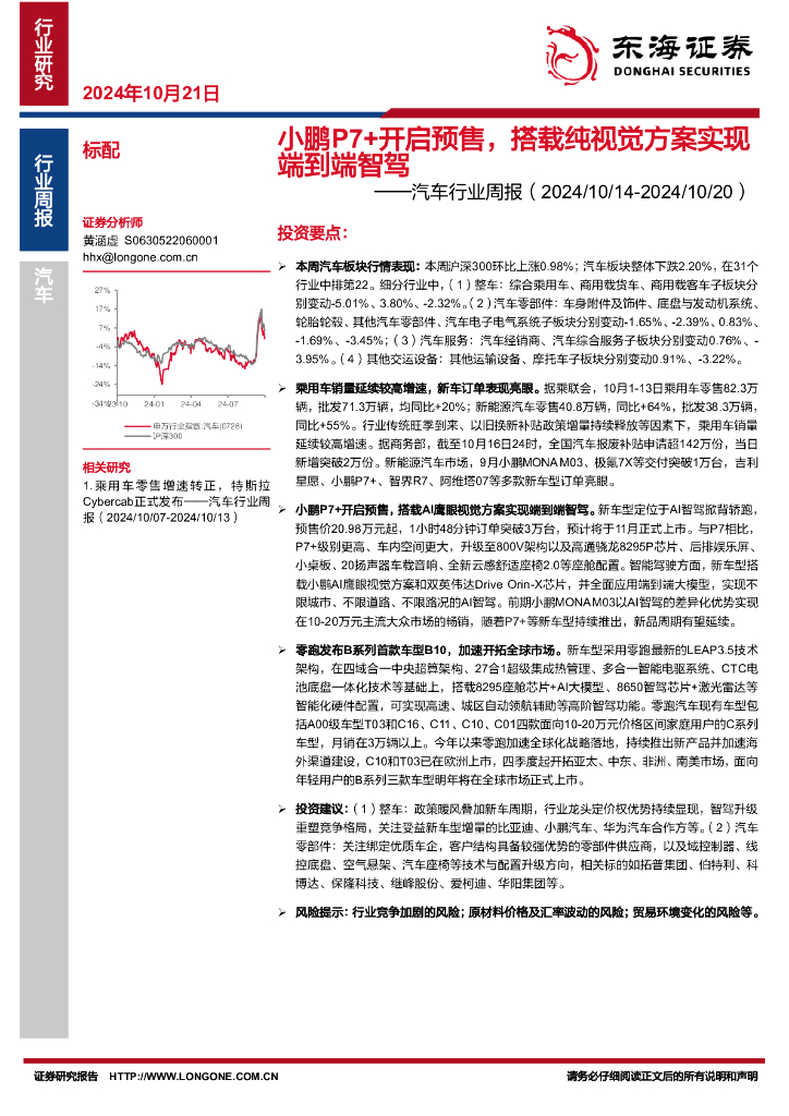 东海证券:汽车行业周报:小鹏P7+开启预售,搭载纯视觉方案实现端到端智驾.pdf