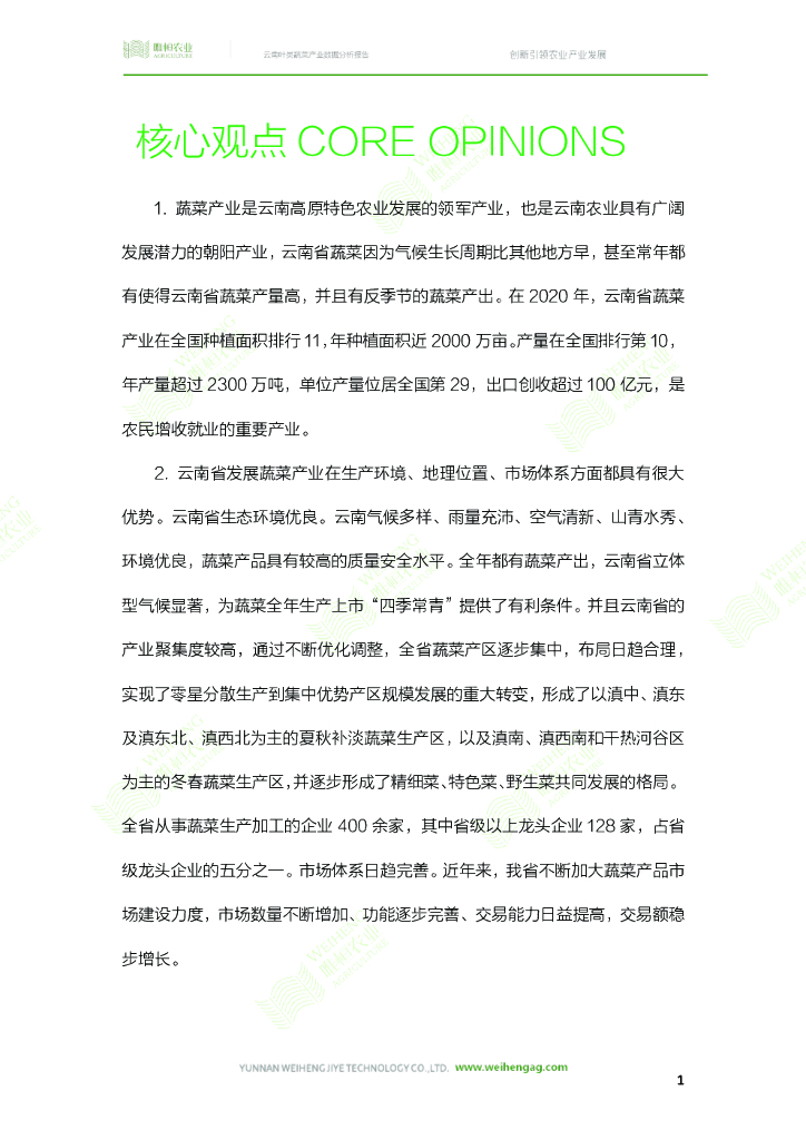 唯恒农业:云南叶类蔬菜产业数据分析报告.pdf