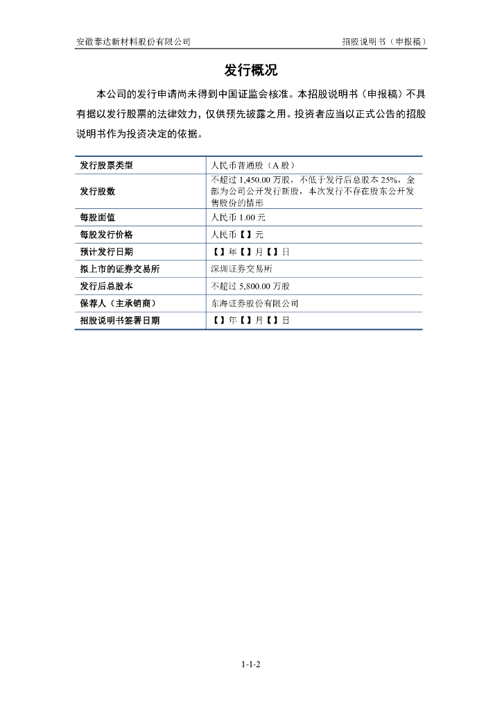 安徽泰达新材料股份有限公司深交所创业板IPO上市招股说明书.pdf