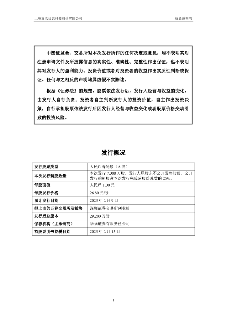 上海真兰仪表科技股份有限公司创业板IPO上市招股说明书.pdf