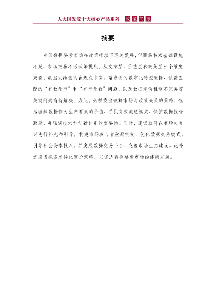 人大国发院政策简报第一百七十四期:中国数据要素市场的发展现状与策略建议.pdf
