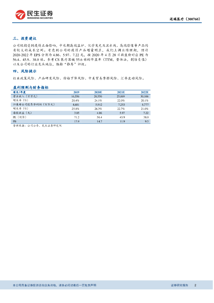 民生证券:迈瑞医疗2020年第一季度报告点评:疫情产品增长迅猛,Q1归母净利润增长30%.pdf