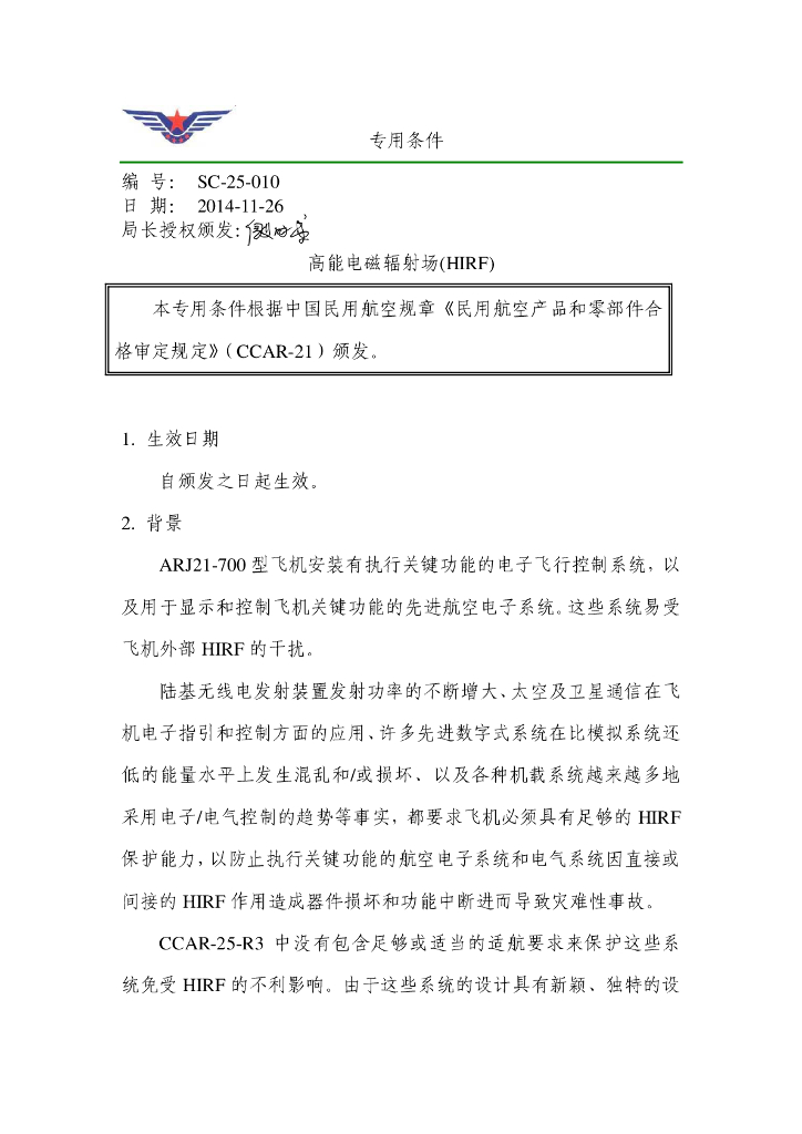 ARJ21-700 型飞机《高能电磁辐射场(HIRF)》专用条件.pdf