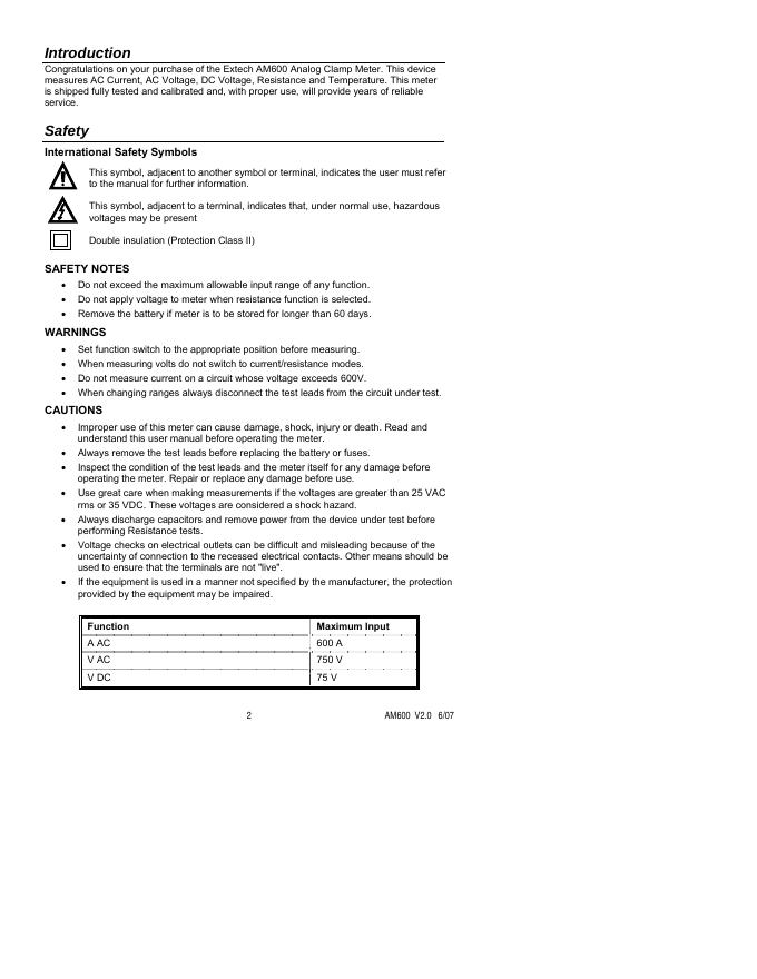 Extech AM600 600A AC模拟钳表用户手册.pdf