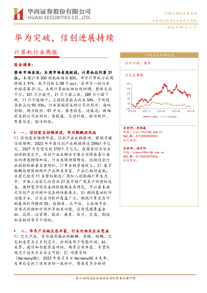 华西证券:计算机行业周报:华为突破,信创进展持续.pdf