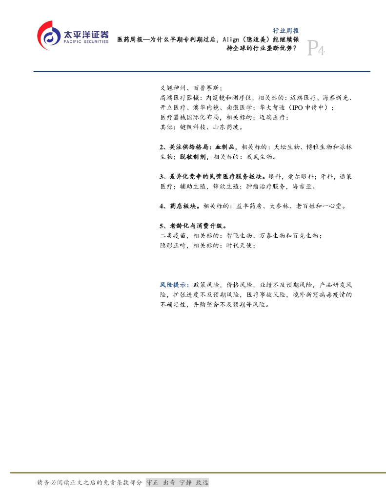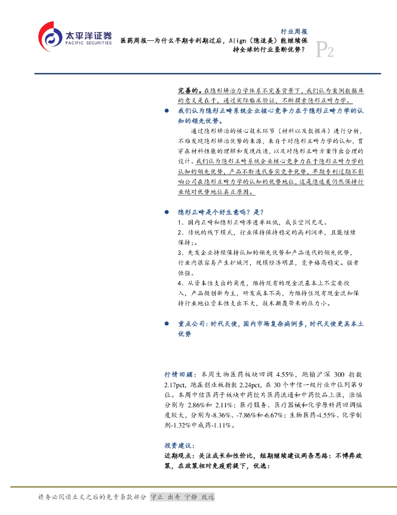 太平洋证券:医药周报:为什么早期专利期过后,Align(隐适美)能继续保持全球的行业垄断优势?.pdf