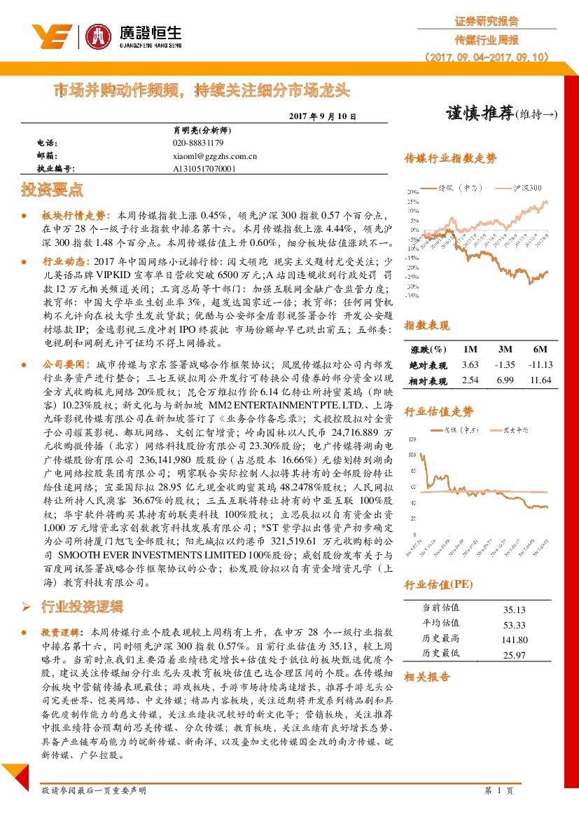 广证恒生证券研究所:传媒行业周报:市场并购动作频频,持续关注细分市场龙头.pdf