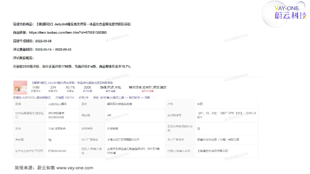 蔚云科技:【欧阳娜娜代言】橘朵高光修容综合盘商品评论分析简报.pdf