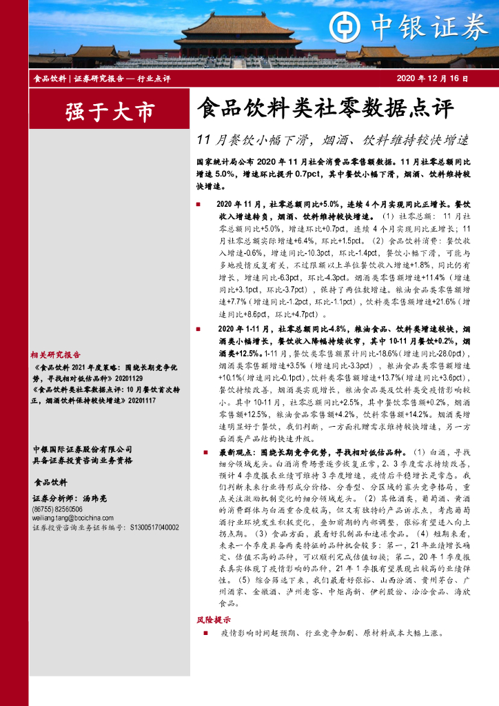 中银证券:食品饮料类社零数据点评:11月餐饮小幅下滑,烟酒、饮料维持较快增速.pdf