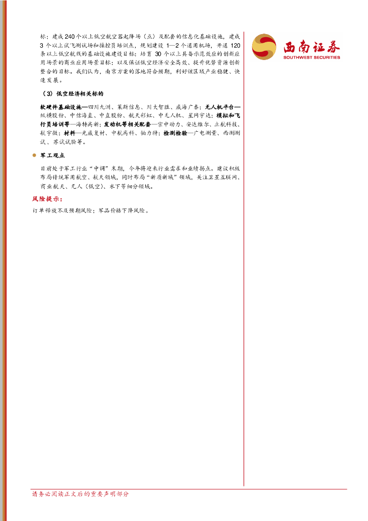 西南证券:军工行业周报:北京、南京方案继续催化,低空经济持续景气.pdf