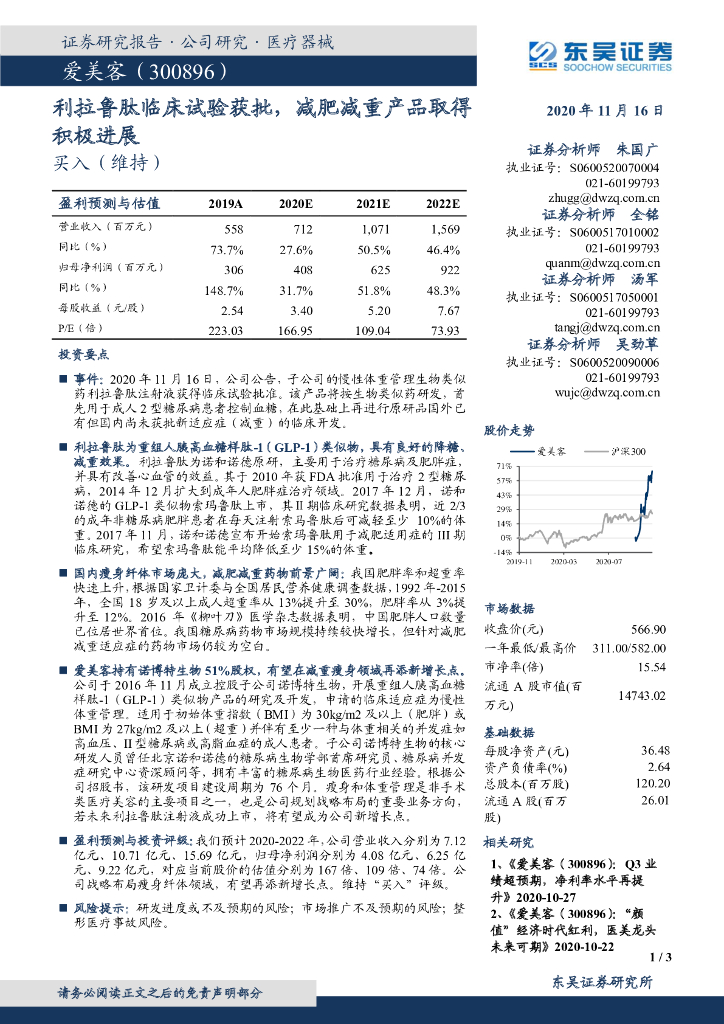 东吴证券:爱美客(300896)-利拉鲁肽临床试验获批,减肥减重产品取得积极进展.pdf