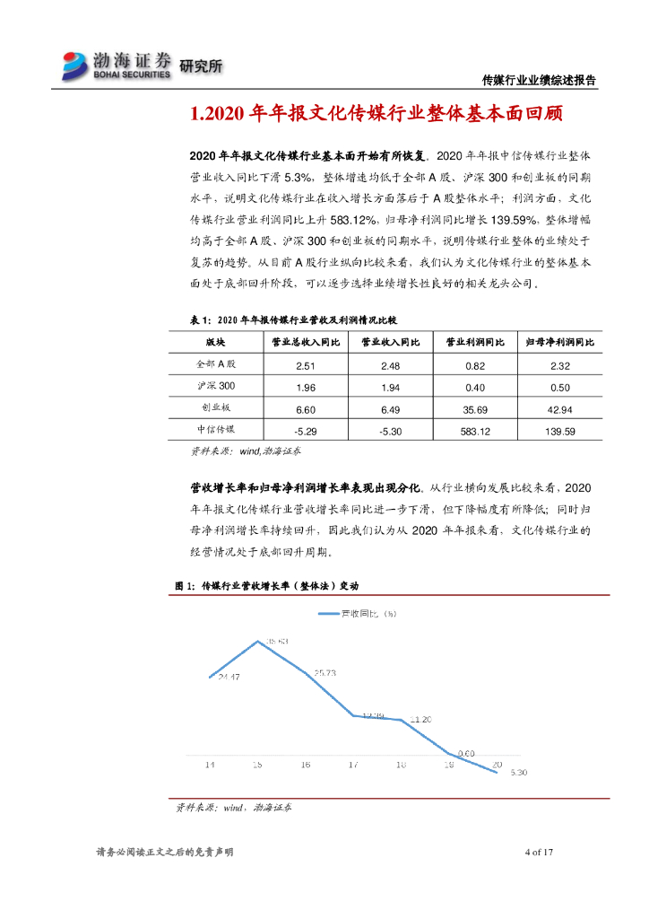 渤海证券:传媒行业年报业绩综述:基本面有所恢复,关注业绩持续回升的龙头.pdf