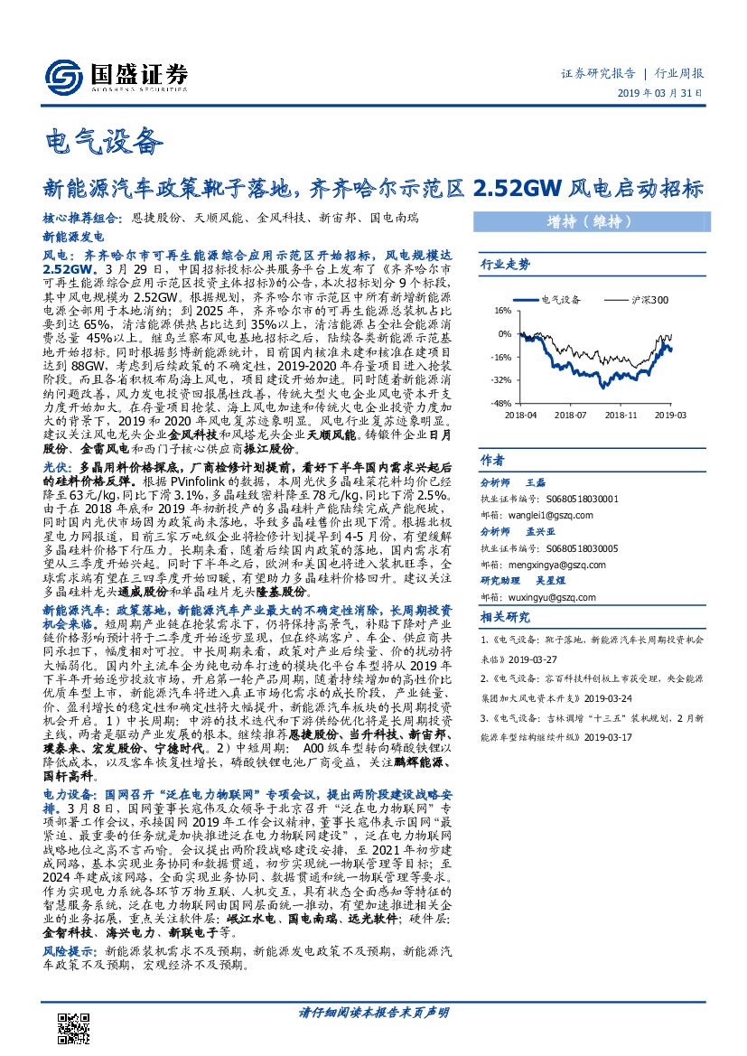 国盛证券:电气设备行业周报:新能源汽车政策靴子落地,齐齐哈尔示范区2.52GW风电启动招标.pdf