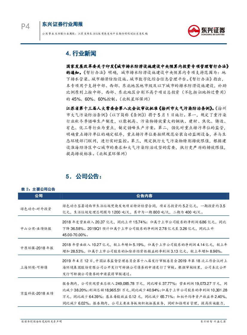 东兴证券:公用事业及环保行业周报:江苏发布生活垃圾焚烧发电中长期专项规划征求意见稿.pdf